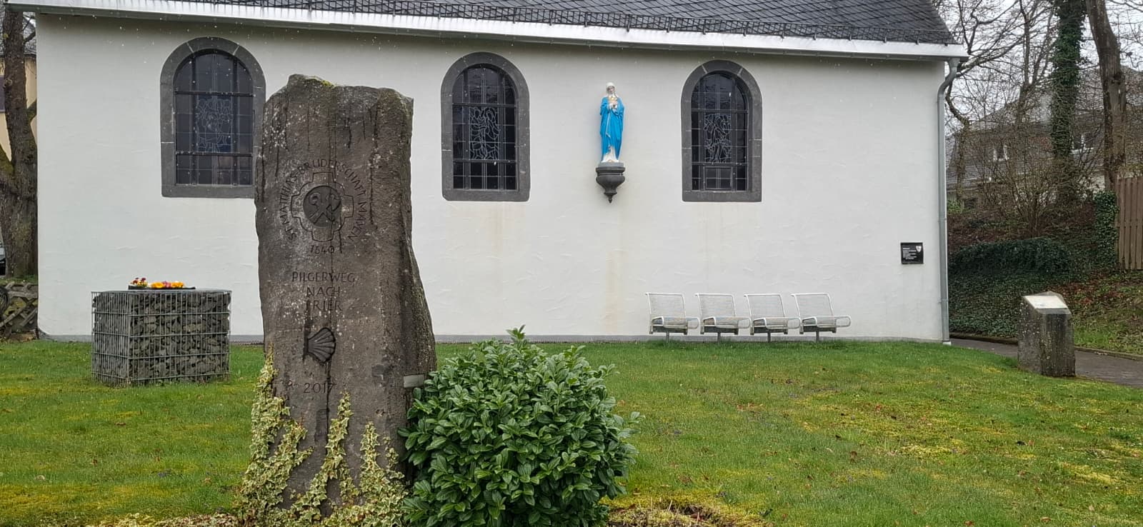Zur Stärkung legen wir hier eine Trinkpause ein. Anschließend wandern wir Richtung Kaisersesch zur Waldkapelle. Dort angekommen pausieren wir eine kurze Zeit. Wer möchte kann sich die sehenswerte Kapelle von innen ansehen, kurz verweilen und innehalten.