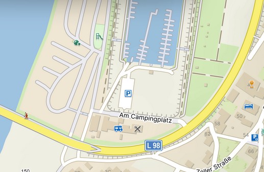 Bitte an der Kopfseite des Hafens parken!