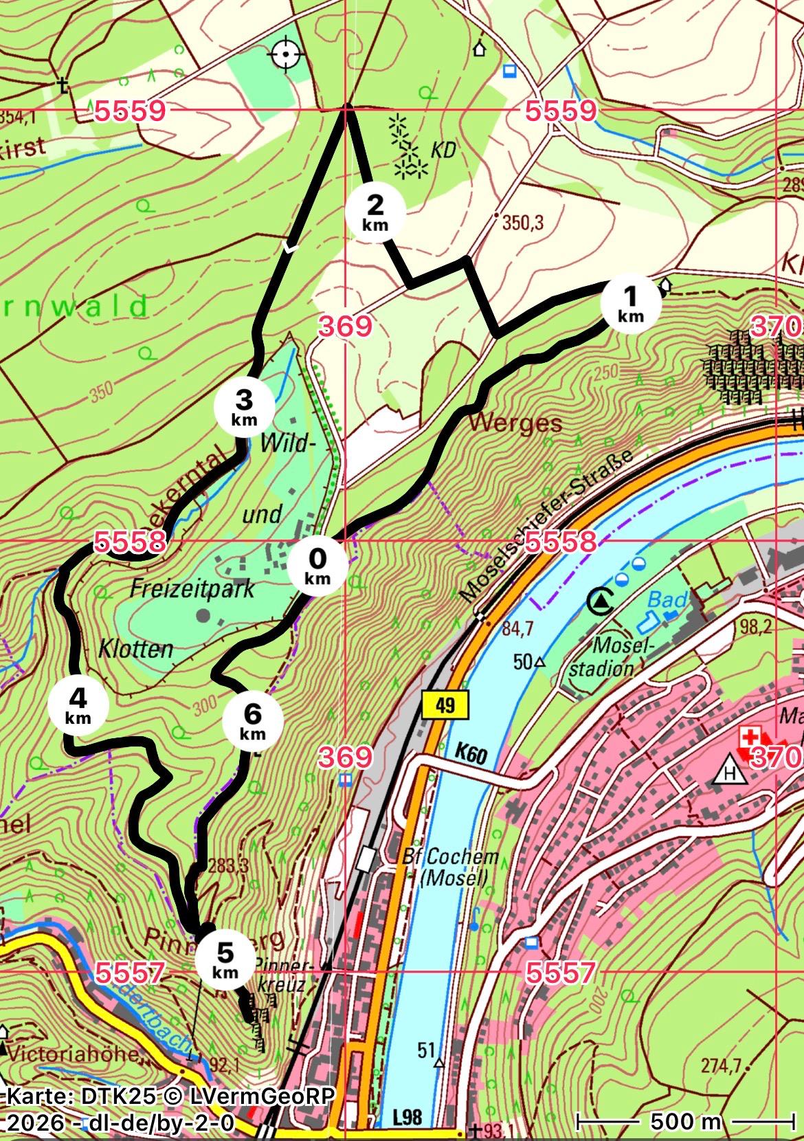 Von hier geht´s einen Kilometer auf dem Moselsteig in östlicher Richtung. Quer über die Felder streben wir das Klottener Schützenhaus an.