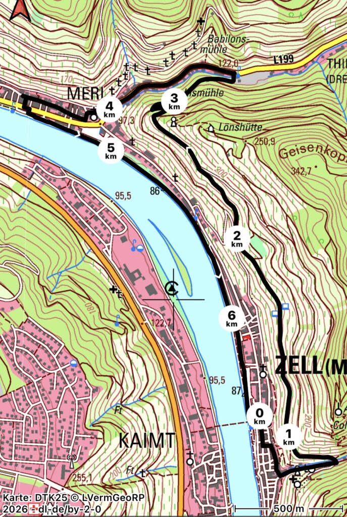 geht es auf halber Höhe durch die Weinberge in Richtung Zell-Merl. Nach