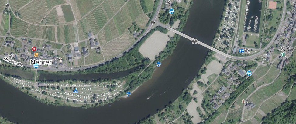 Senheimer Hafen über die Brücke zum Moseluferweg (Radweg) Richtung
