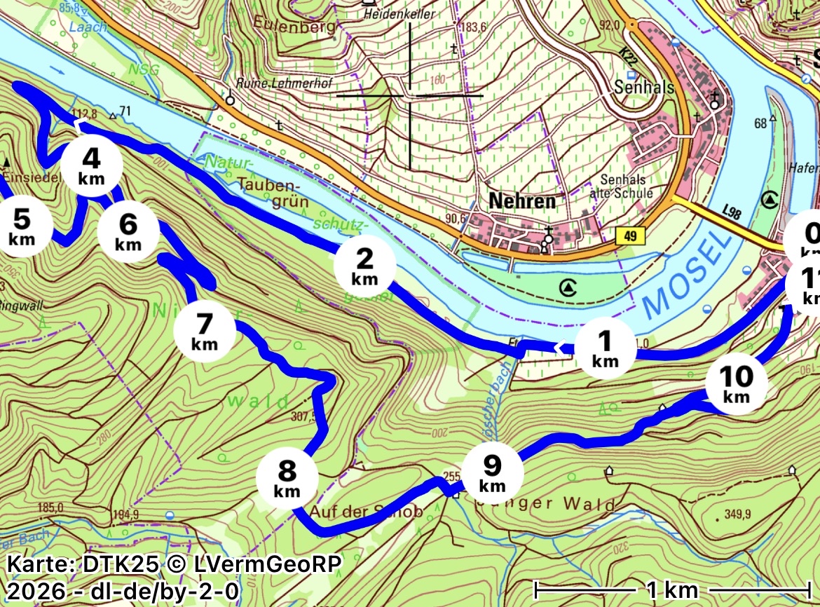 Der Rundweg ist ca.12km bei 290 HM und mittelschwer.