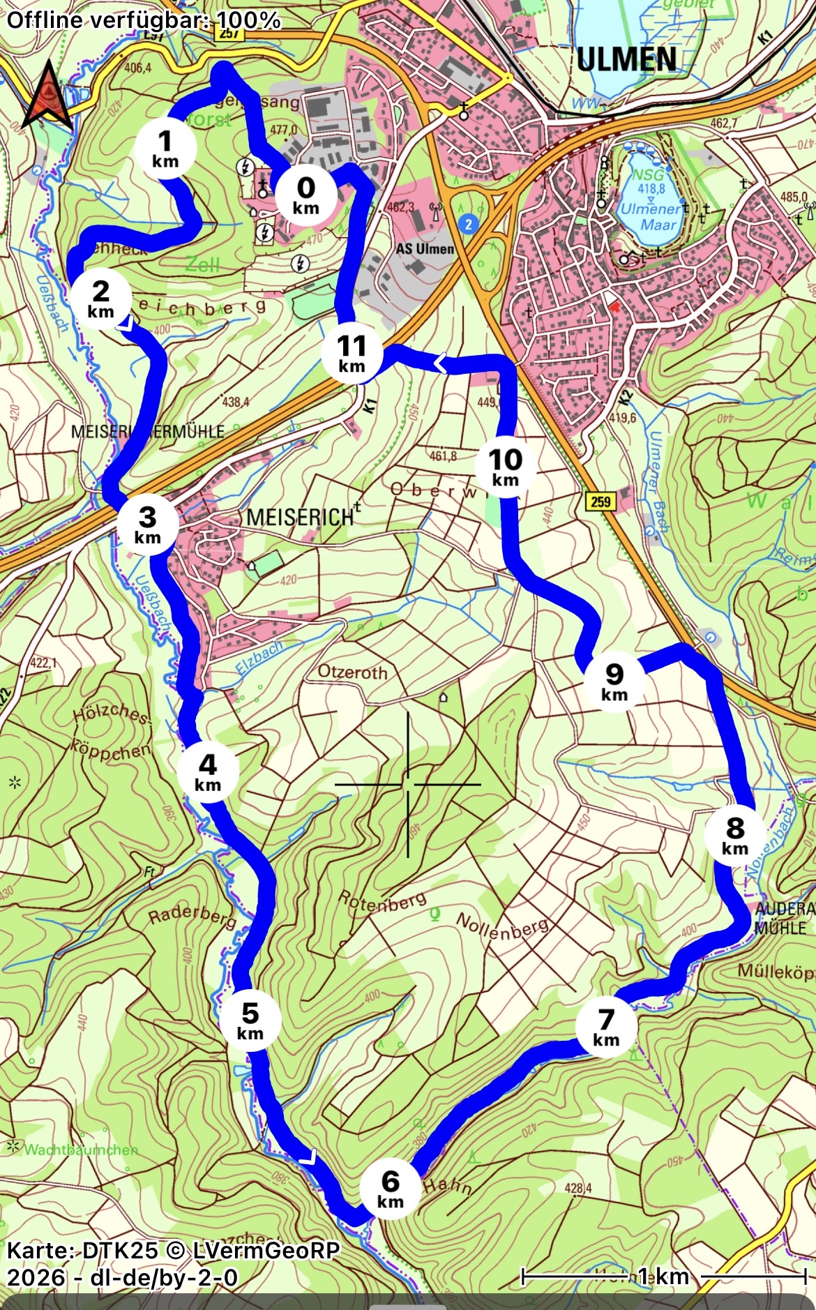 Meiserichermühle vorbei und erreichen Ulmen/Meiserich. Weiter geht es durch das
